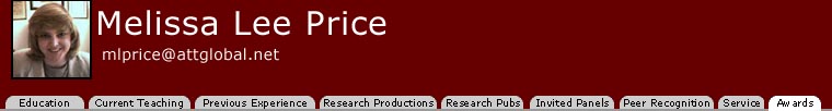 Education | Current Teaching | Previous Experience | Research Productions | Research Publications | Invited Panels | Peer Recognition | Service | Awards |