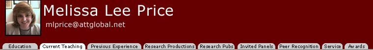 Education | Current Teaching | Previous Experience | Research Productions | Research Publications | Invited Panels | Peer Recognition | Service | Awards |