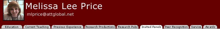 Education | Current Teaching | Previous Experience | Research Productions | Research Publications | Invited Panels | Peer Recognition | Service | Awards |