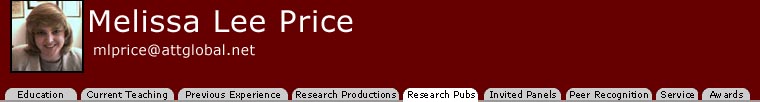 Education | Current Teaching | Previous Experience | Research Productions | Research Publications | Invited Panels | Peer Recognition | Service | Awards |