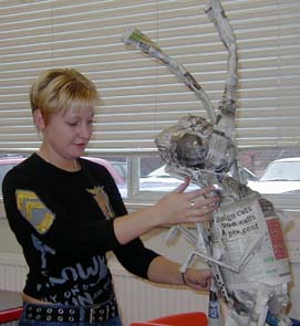 a 1 meter high kangaroo, that has to stand upright, out of old newspapers