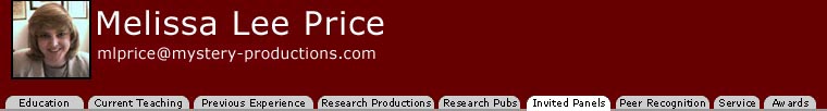 Education | Current Teaching | Previous Experience | Research Productions | Research Publications | Invited Panels | Peer Recognition | Service | Awards |
