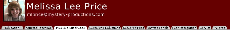 Education | Current Teaching | Previous Experience | Research Productions | Research Publications | Invited Panels | Peer Recognition | Service | Awards |